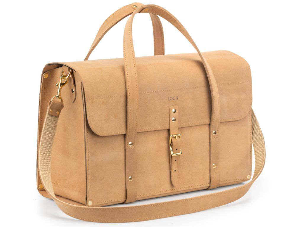 Box/Brašna z přírodní broušené kůže s jednoduchostí třicátých let. Promyšlená jednoduchost a minimum prvků připomíná odlehčený interiér tehdejších automobilů.