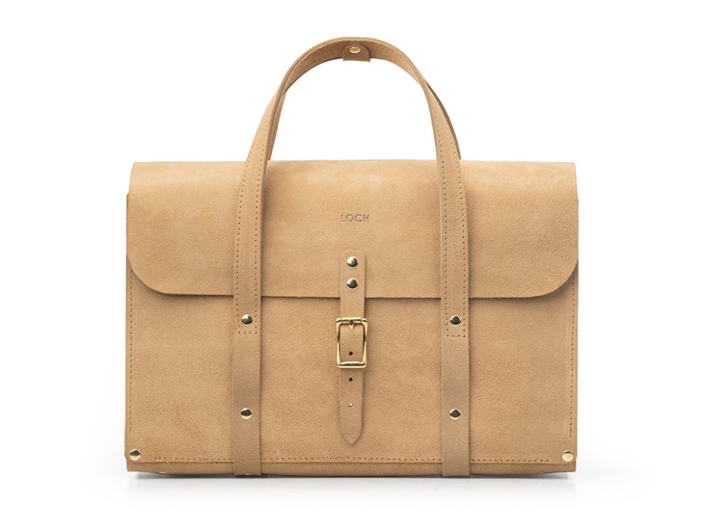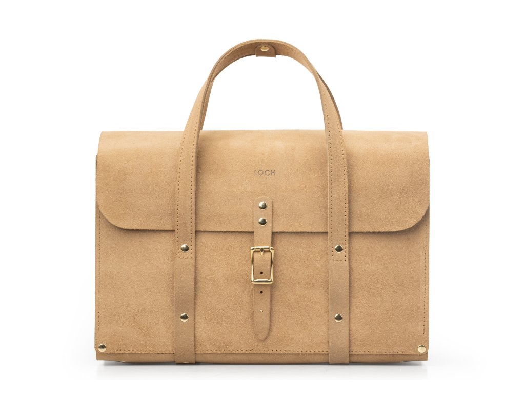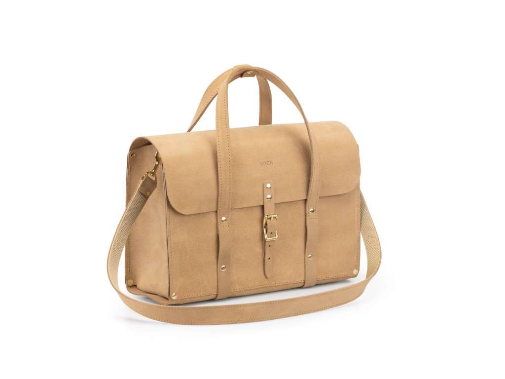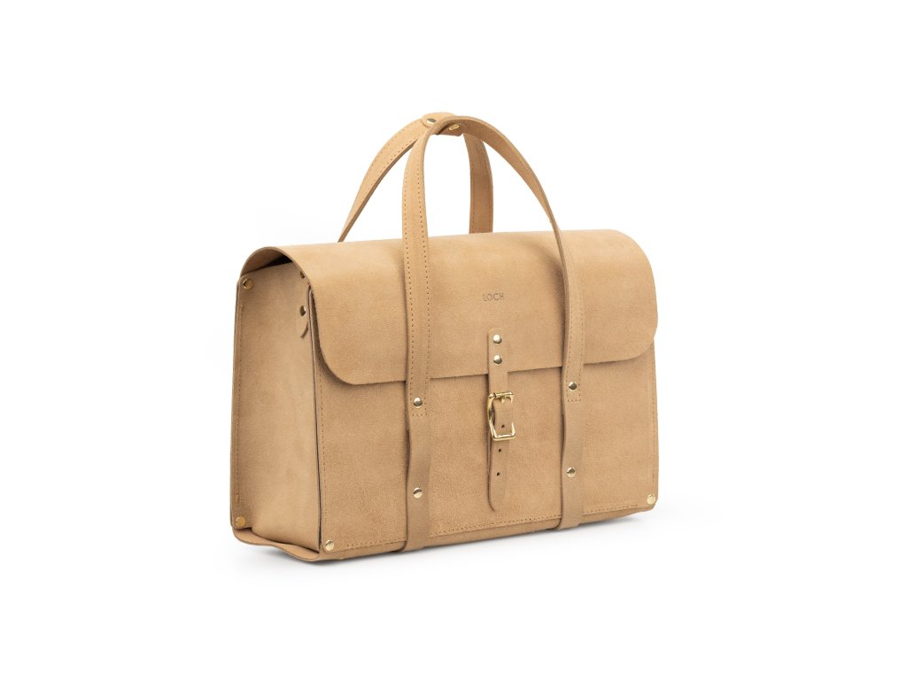 Brašna z přírodní broušené kůže s jednoduchostí třicátých let. Promyšlená jednoduchost a minimum prvků připomíná odlehčený interiér tehdejších automobilů.